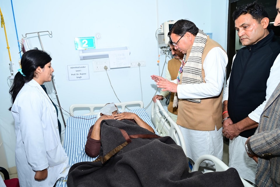 आज डॉ. सुशीला तिवारी अस्पताल, हल्द्वानी जाकर बुधवार को भीमताल में हुए बस दुर्घटना में घायलों से मुलाकात की। इस दौरान मुख्यमंत्री ने अस्पताल प्रशासन को बेहतर उपचार देने के निर्देश दिए। साथ ही कुमाऊं कमिश्नर श्री दीपक रावत को सड़क हादसों को रोकने के लिए पर्वतीय क्षेत्रों में सघन चेकिंग अभियान चलाने के निर्देश भी दिए।मुख्यमंत्री ने कहा कि ऐसे सड़क हादसों को रोकने के लिए अन्य राज्यों से आ रही गाड़ियों के लाइसेंस की जांच और अन्य दस्तावेज की जांच हेतु सघन चेकिंग अभियान चलाया जाएगा। साथ ही यातायात को नियंत्रण करने के लिए कुमाऊं आयुक्त को जिम्मेदारी दी गई है।